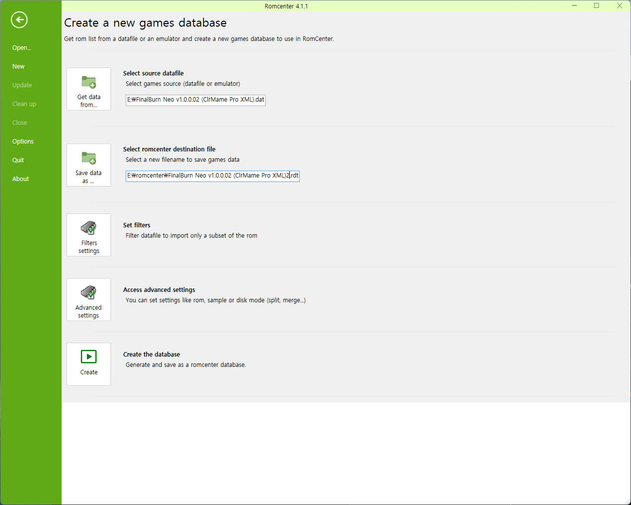 Dat 파일을 만들기 위해 FBneo가 필요하다. 현재 버전은 1.0.0.2