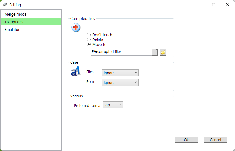 Advanced settings 에 들어가면 Fix options이 있는데 손상된 파일을 어떻게 처리하는지에 대한 선택지가 있다.