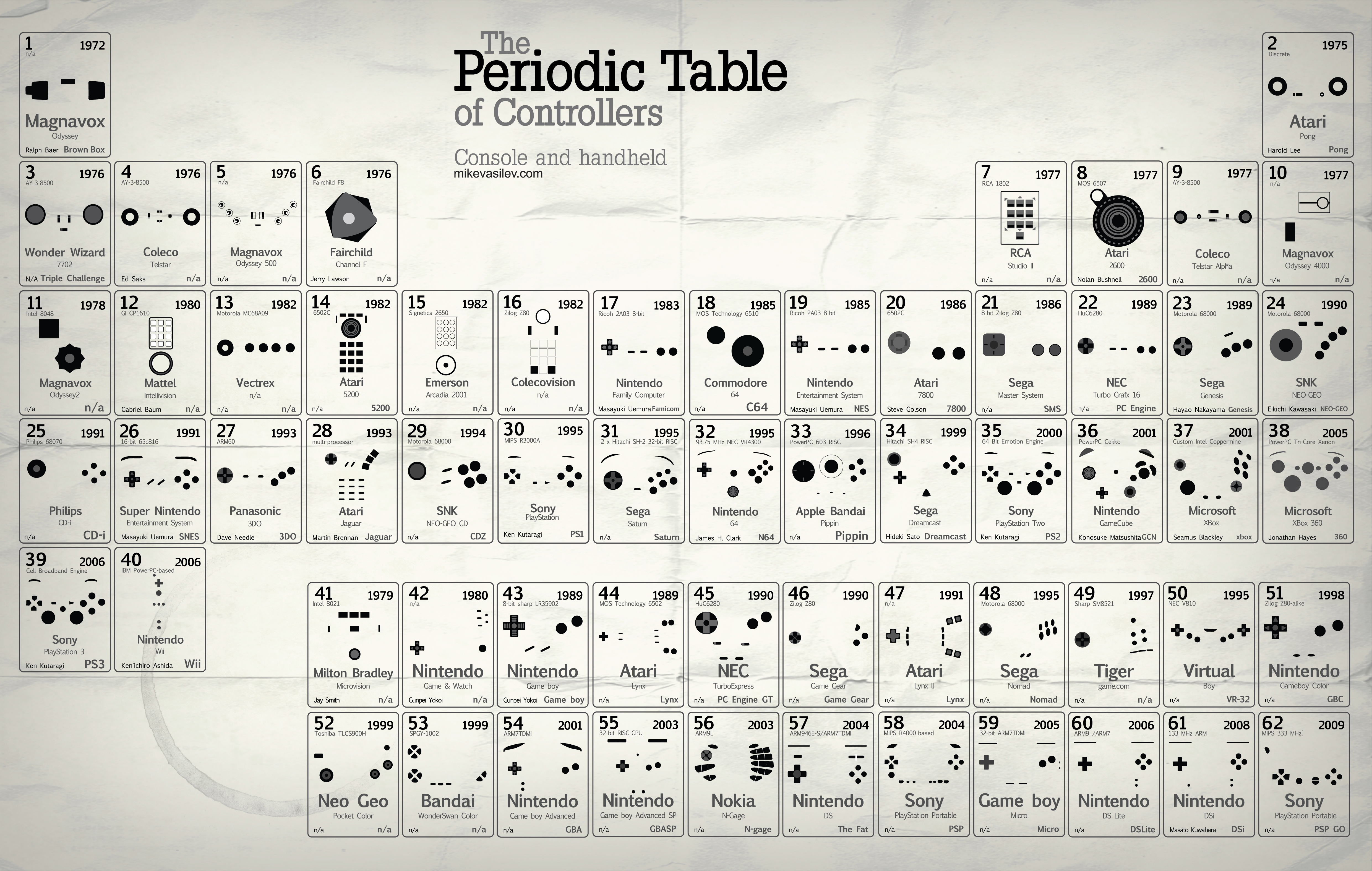 1~5세대의 콘솔을 비롯해 다양한 기종이 있는 만큼 게임 컨트롤러도 1 버튼부터 시작해서 다양한 종류가 있다. 현재는 2 개의 아날로그 스틱, 1개의 십자키, 4개의 입력 버튼, 4개의 사이드 버튼, 2개 이상의 시스템 버튼을 기준으로 하는 게임 컨트롤러(PS3 무선 듀얼쇼크 혹은 xbox360)를 기준으로 하고 있다.