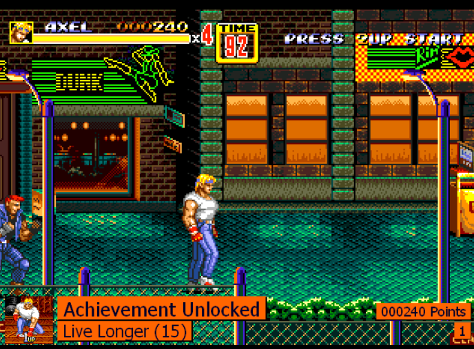 https://retroachievements.org/ 사이트에 가입을 하고 레트로아크 설정창에서 가입한 ID와 패스워드를 입력해 두기만 하면 게임을 진행할 때 도전 과제 달성 표시를 볼 수 있다. 그리고 https://retroachievements.org/ 에서 해당 게임에 대한 사용자들과 소통도 가능하다.